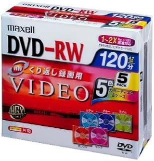マクセル DVD-RW 120分 2倍速 5枚 CPRM対応 5色カラーディスク&10mm厚ケース maxell DRW120MIX.1P5S