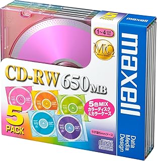 maxell データ用 CD-RW 650MB 4倍速対応 カラーMIX 5枚 5mmケース入 CDRW74MIX.1P5S