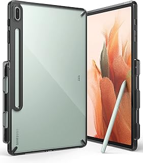 【Ringke】Galaxy Tab S7 FE ケース ペンホルダー付き TPU+ポリカーボネートハイブリッド [米軍MIL規格取得] 透明 落下防止 軽量 薄型 カバー クリア タブレットケー Fusion (Smoke Black スモークブラック)
