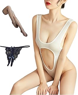 OLYOLY【3点セット】穴あき 超ハイレグ レオタード 透ける お姉さん 過激 セクシー コスプレ ニーハイ Tバック (01 白)
