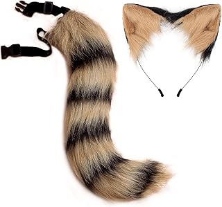 OLYOLY【2点セット】かわいい しっぽ コスプレ クリスマス パーティー グッズ 仮装 三毛猫 トラ しましま キャット 狐 猫 犬 尻尾 狐耳 犬耳 つけ耳 柴 狼 狸 猫耳 アニマル 動物 メイド (09 キャメル×黒縞)